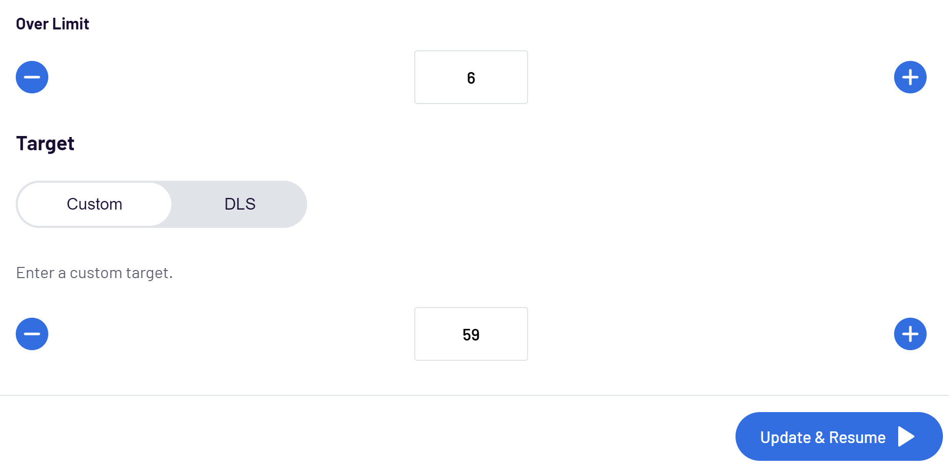 Change the Over Limit by using the plus and minus icons or by entering in the new number
