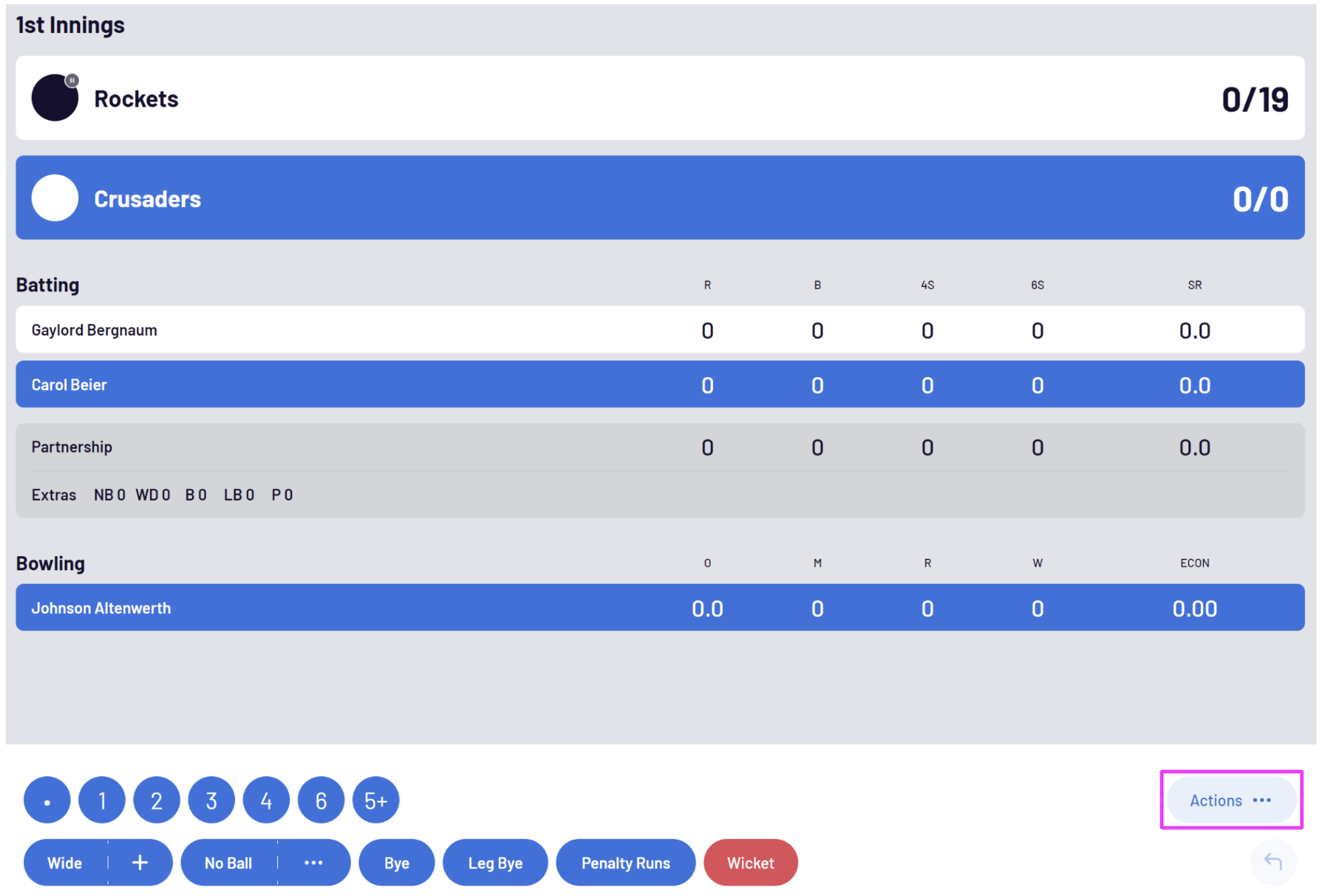 Ending an innings will happen as usual when all batters being dismissed, or by manually ending the Innings via the Actions button.