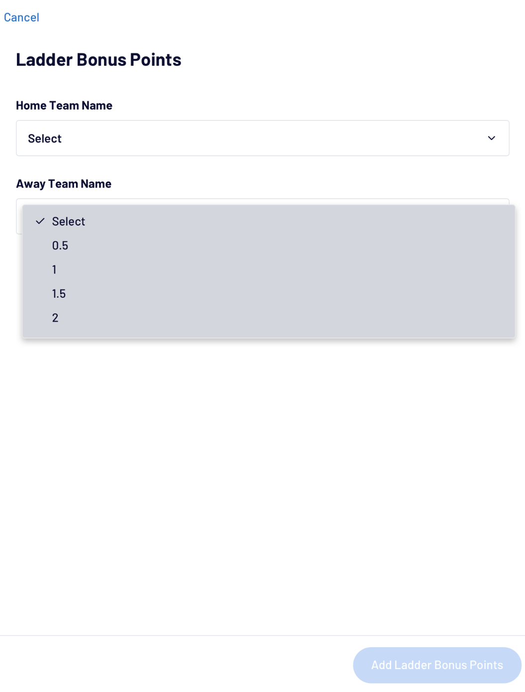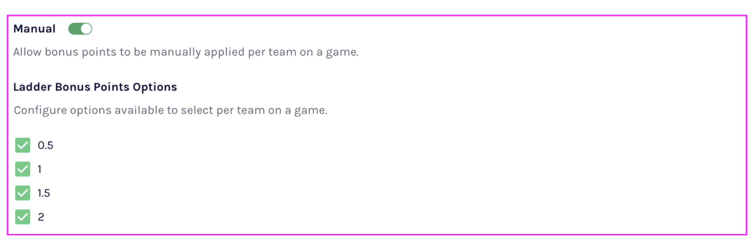 Once the setting is on, Manual Bonus points can be added across all PlayHQ platforms.
