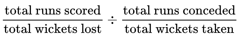 This is sometimes referred to as % or "Runs Per Wicket Ratio". The calculation for Quotient is as follows: