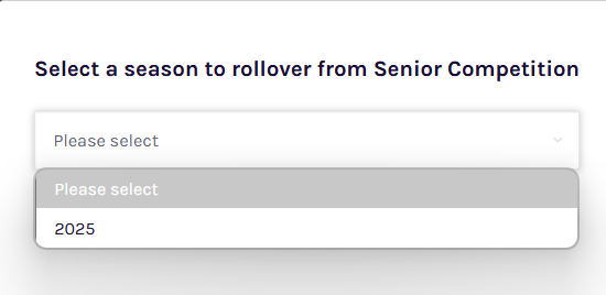 | Season Name | Season names are configured by the sports governing body. Select the appropriate season name from the dropdown list. In any given competition, only one season can be named the same. However, different competitions can each have a season named the same. For example, a Junior Domestic competition and a Senior Domestic competition can each have a 'Summer 2025/26' season. |