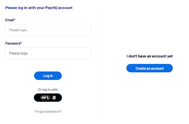 If you are unsure of your PlayHQ email and password, your email is always the same as your AFLiD account, and you can reset your password if required.