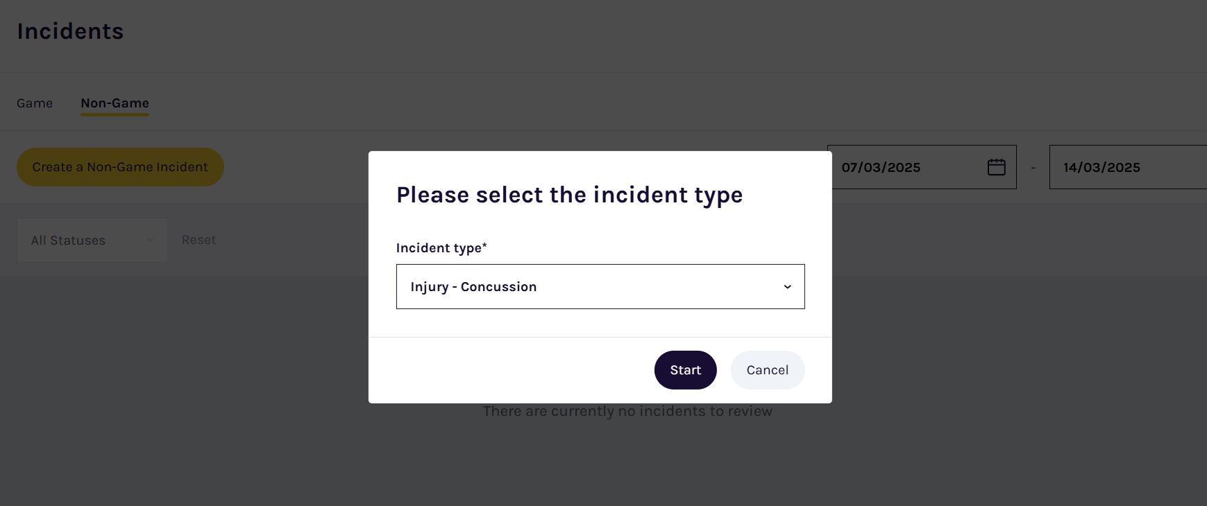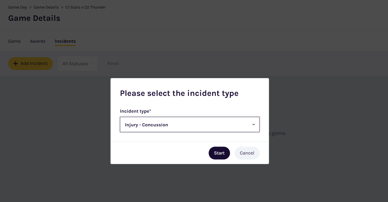 - Select Injury - Concussion as the Incident Type.