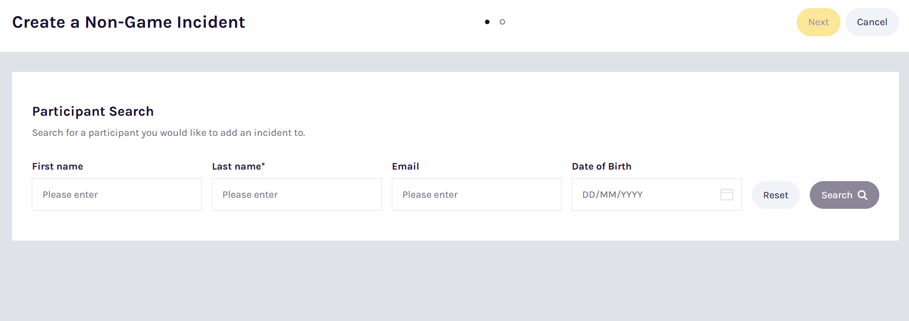 - Choose the affected Player and provide a brief Incident Description, then click Next.