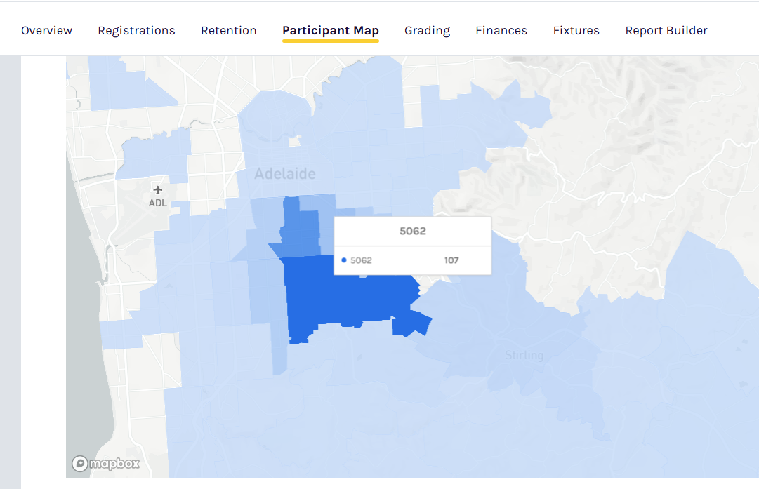 Apply filters for season, competition, program, gender, and more to refine your view. This is ideal for identifying areas where you have lots of members compared to areas you could grow into.