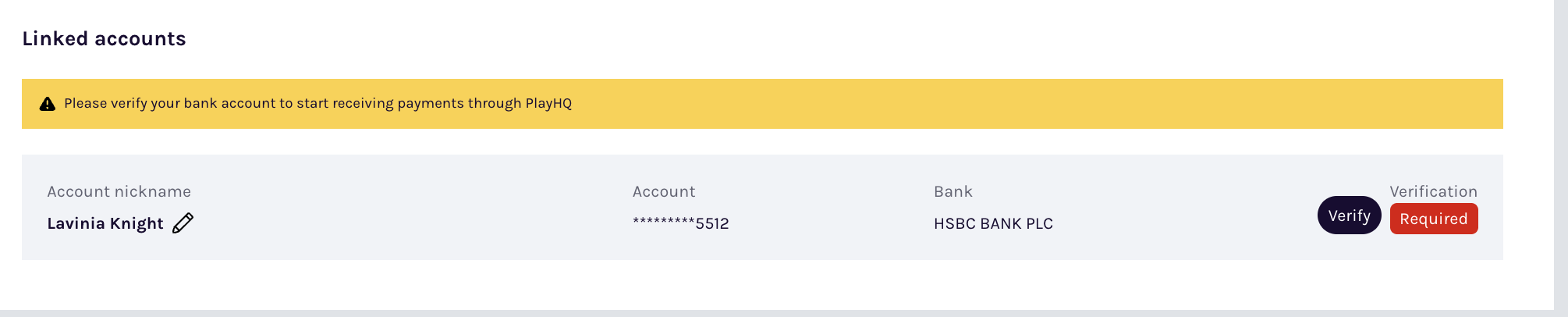 Setting up payment details allows your organisation to accept online payments through PlayHQ.