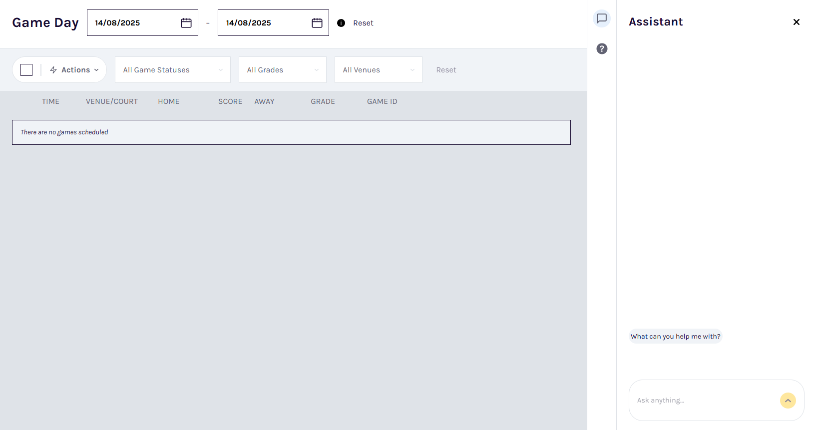 - Accessing the PlayHQ Assistant within the Admin Portal