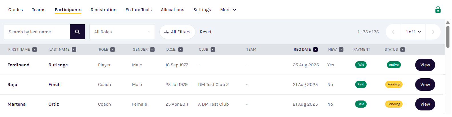 ⚠️ Important: Participants with "Pending" registration status cannot be allocated to teams or gamesheets until their WWCC is validated.
