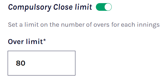 An innings will automatically end when the batting team is all out or if they have reached their “Compulsory close limit” that is pre-configured by your Association Administrator for your grade
