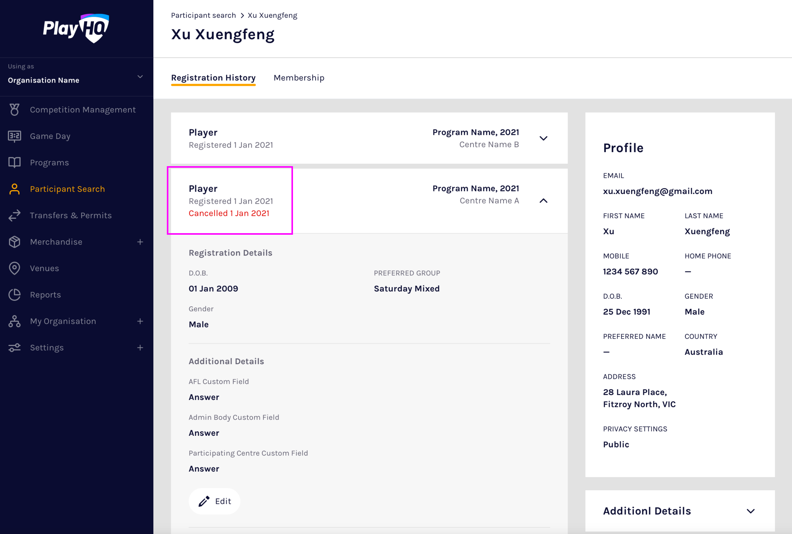 💡 Tip: If a participant wishes to move between organisations in the same program season, consider using a program transfer instead of cancelling their registration.
