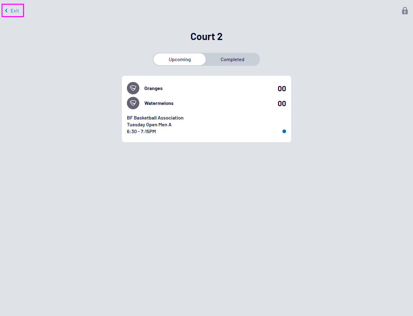 The device will now be locked to the day and court and will require the 4 digit number PIN to exit: