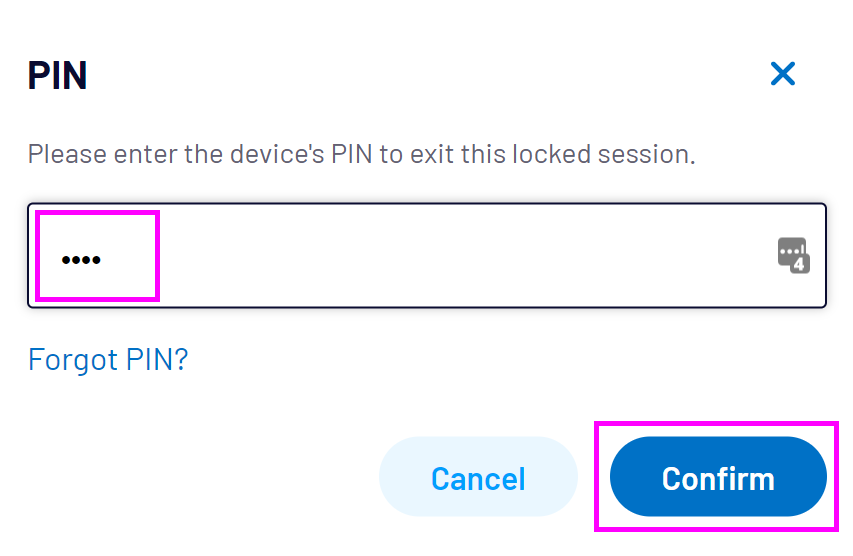 Enter the session 4 digit number PIN, then select Confirm: