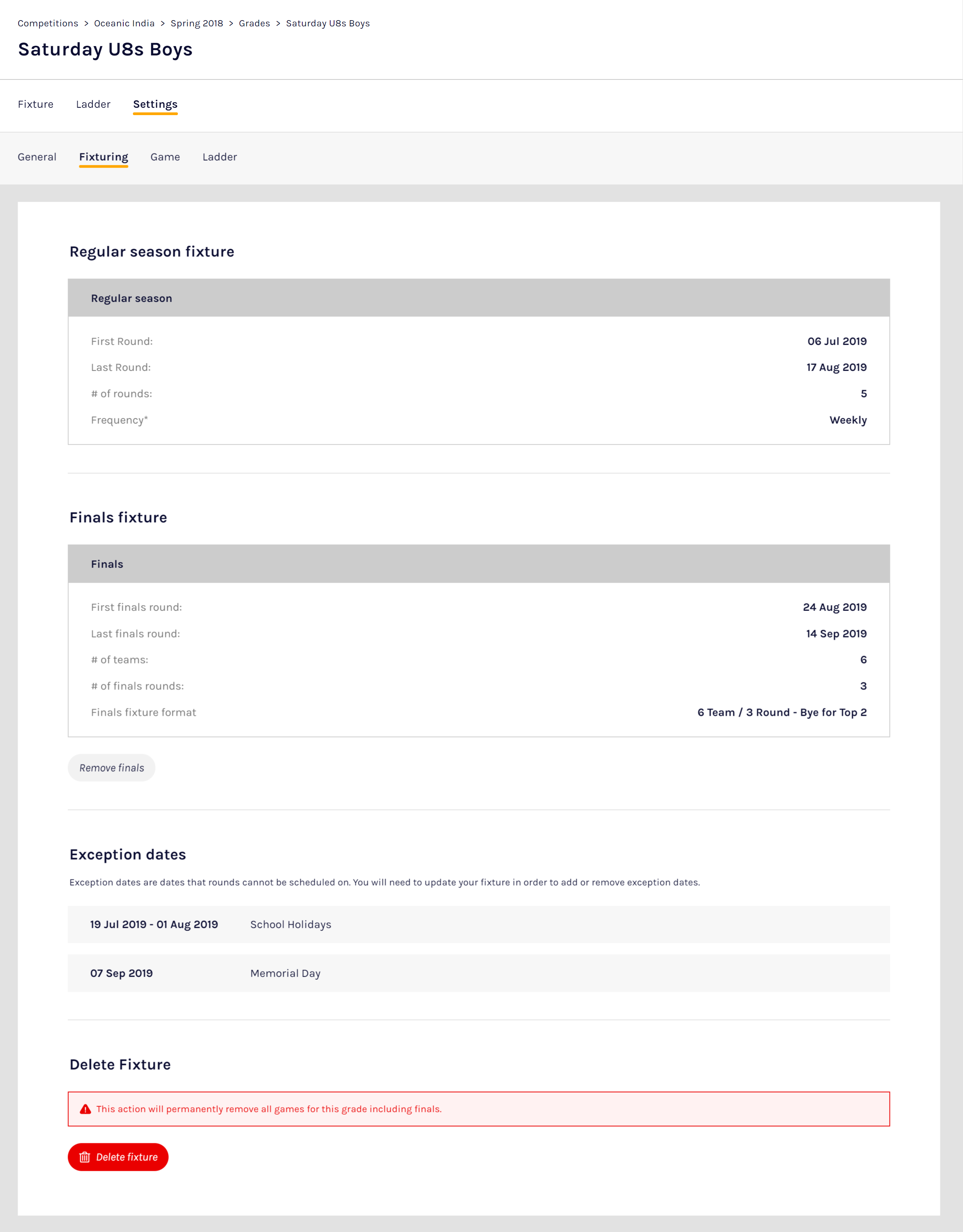 Note: if you had finals fixtured, they will have been deleted as well.