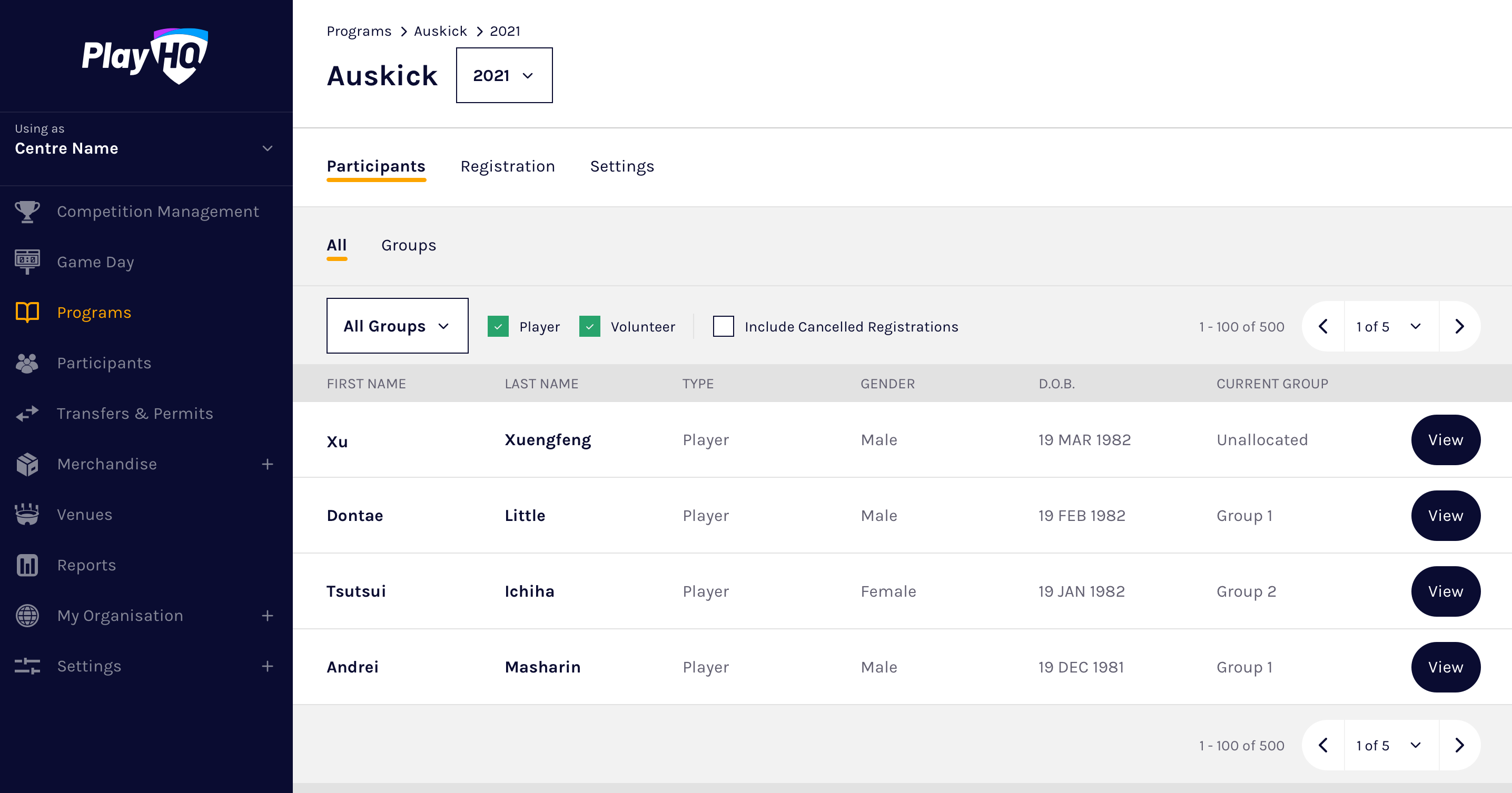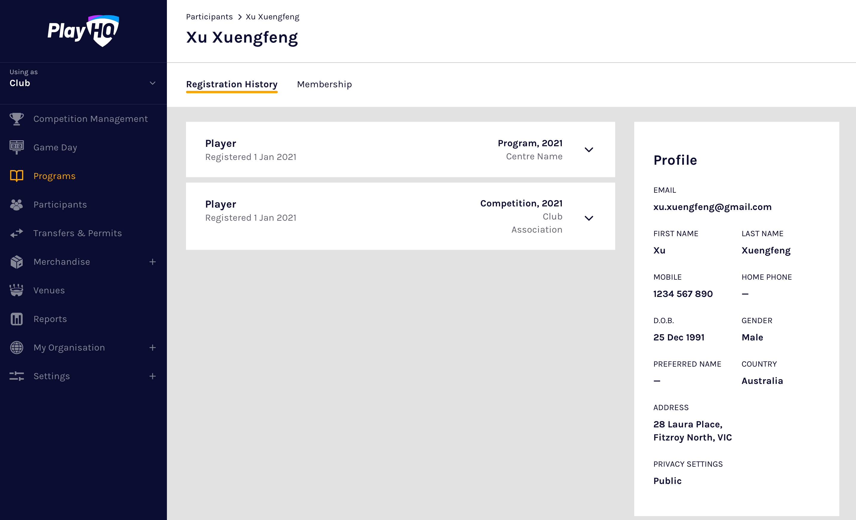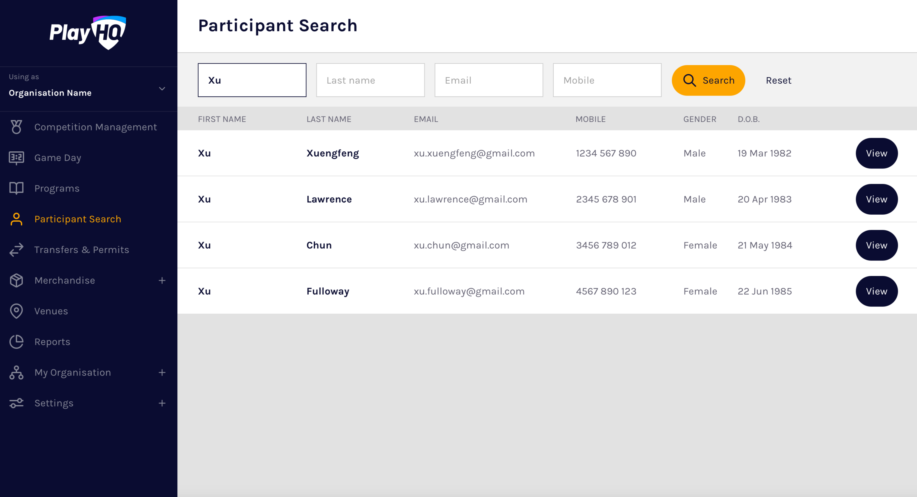 Once a participant completes their program registration, they are immediately viewable to the organisation they registered to in the PlayHQ admin portal. There are two ways that participants can be searched in the PlayHQ admin portal: