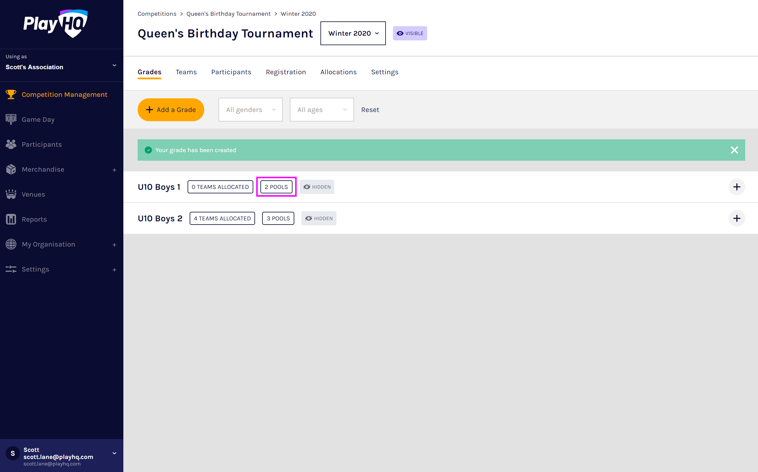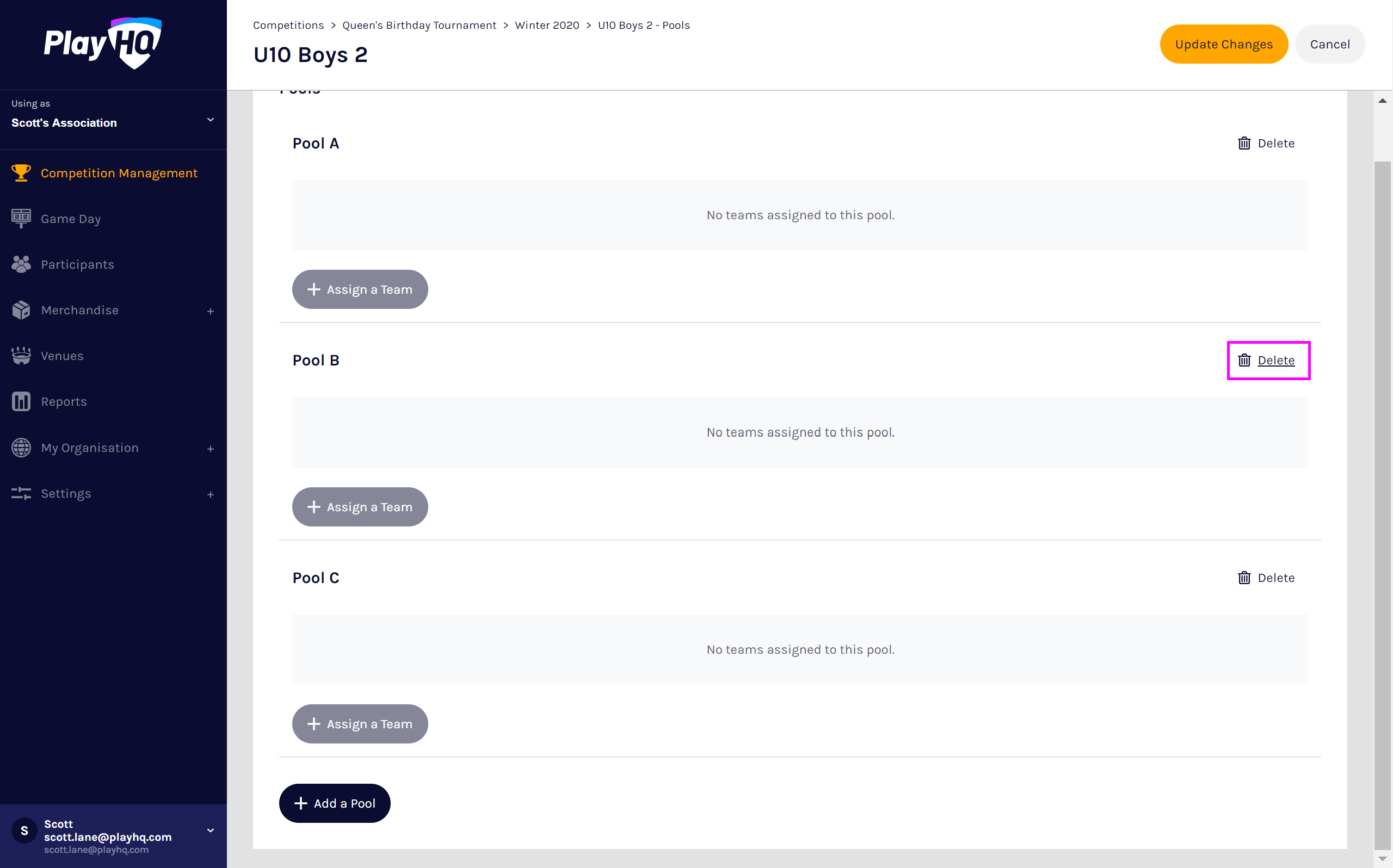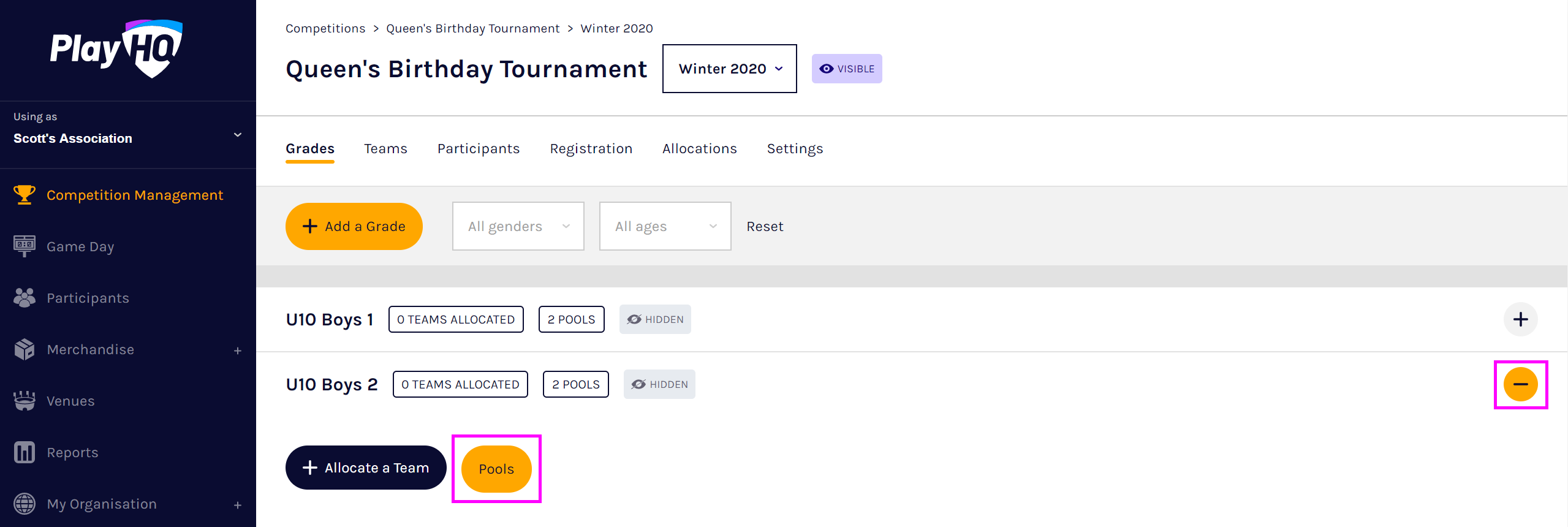 Note: A pool can only be removed if all teams have been unassigned from the pool, the grade has not been fixtured, and the grade has more than two pools.