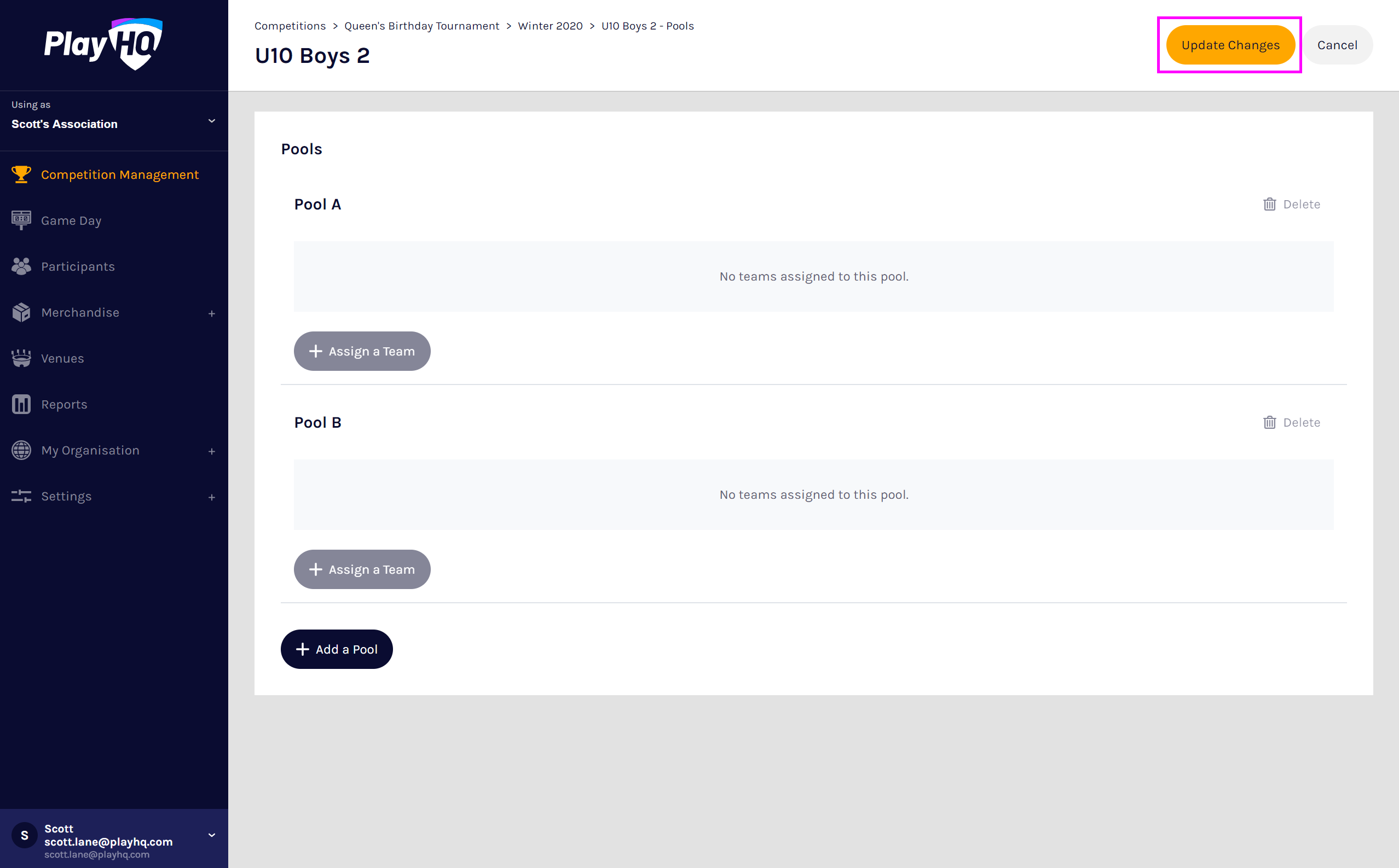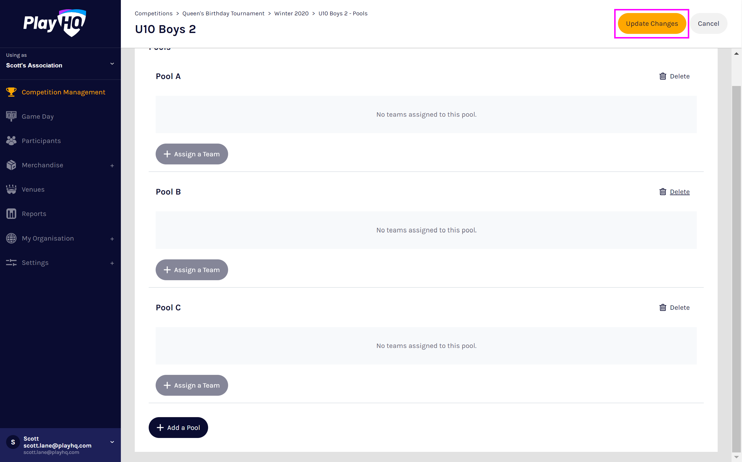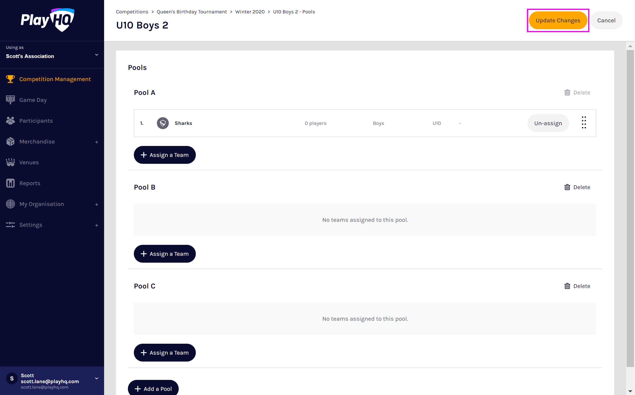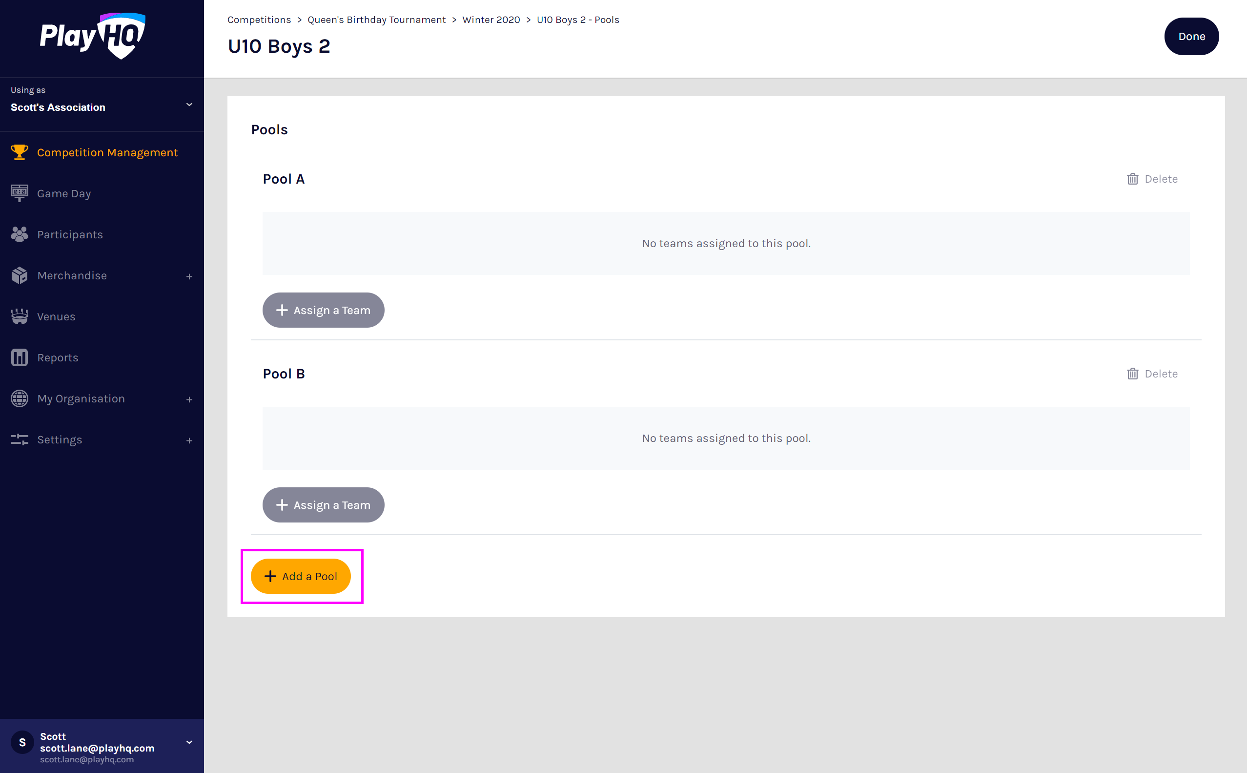 Note: A pool can only be removed if all teams have been unassigned from the pool, the grade has not been fixtured, and the grade has more than two pools.