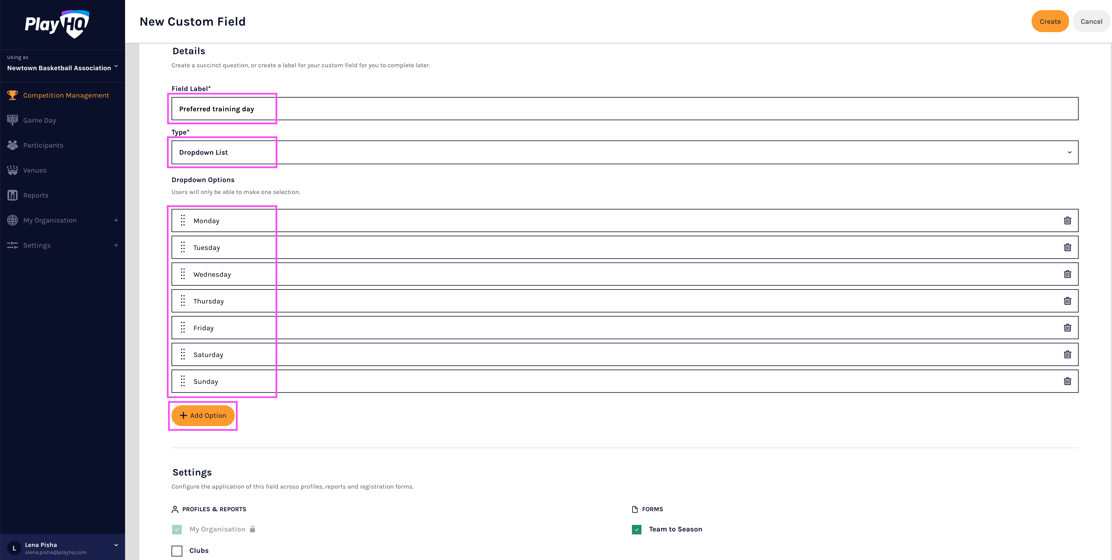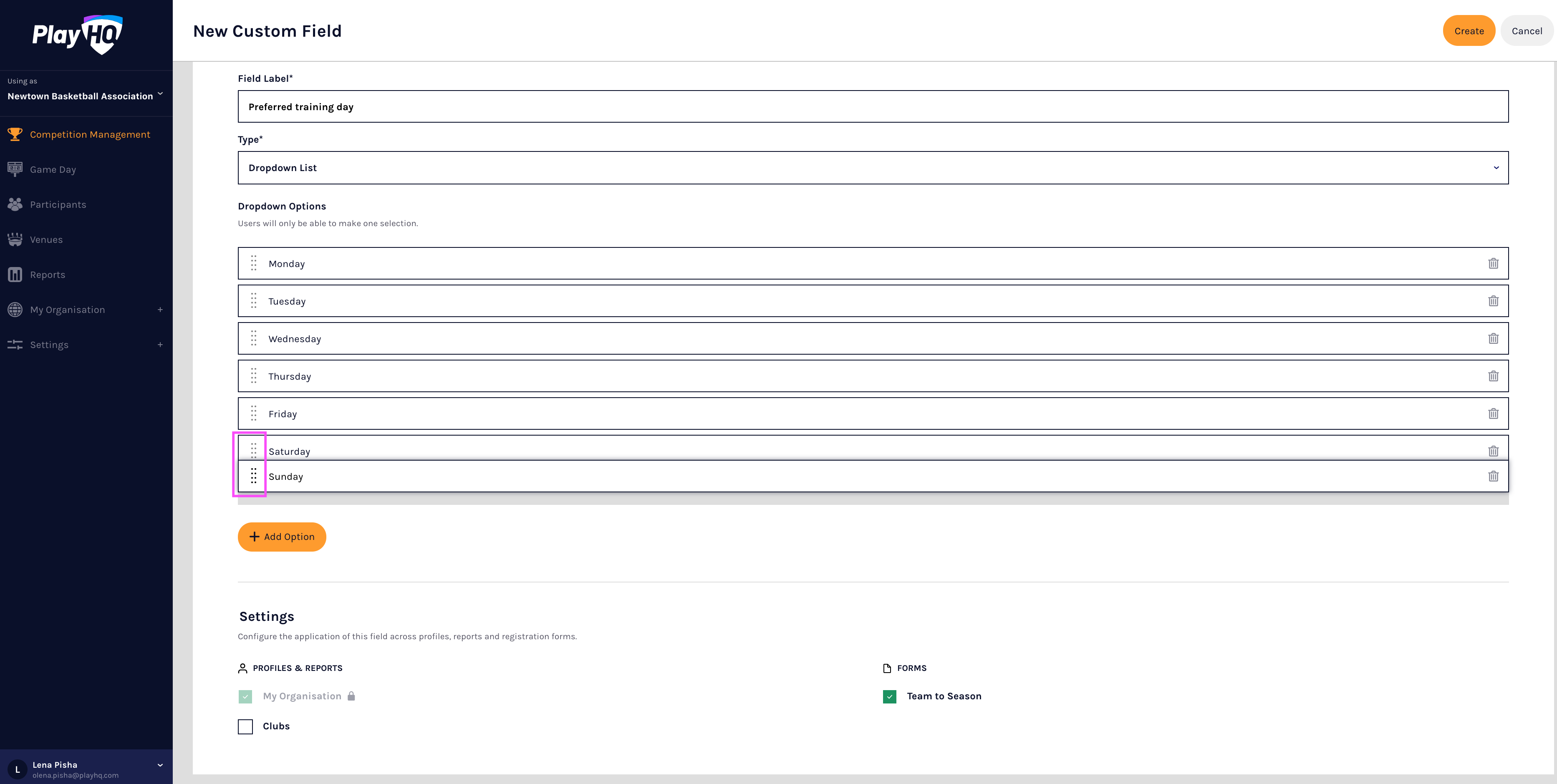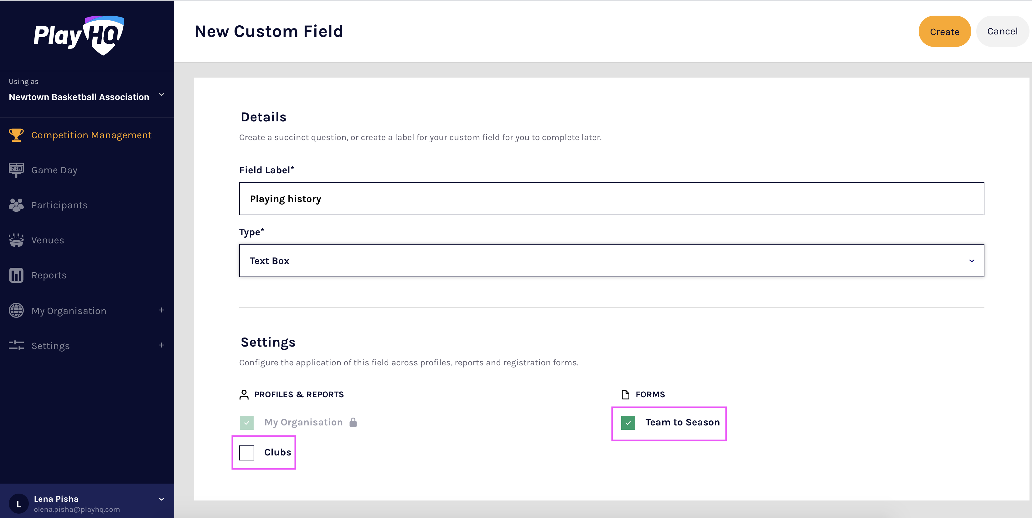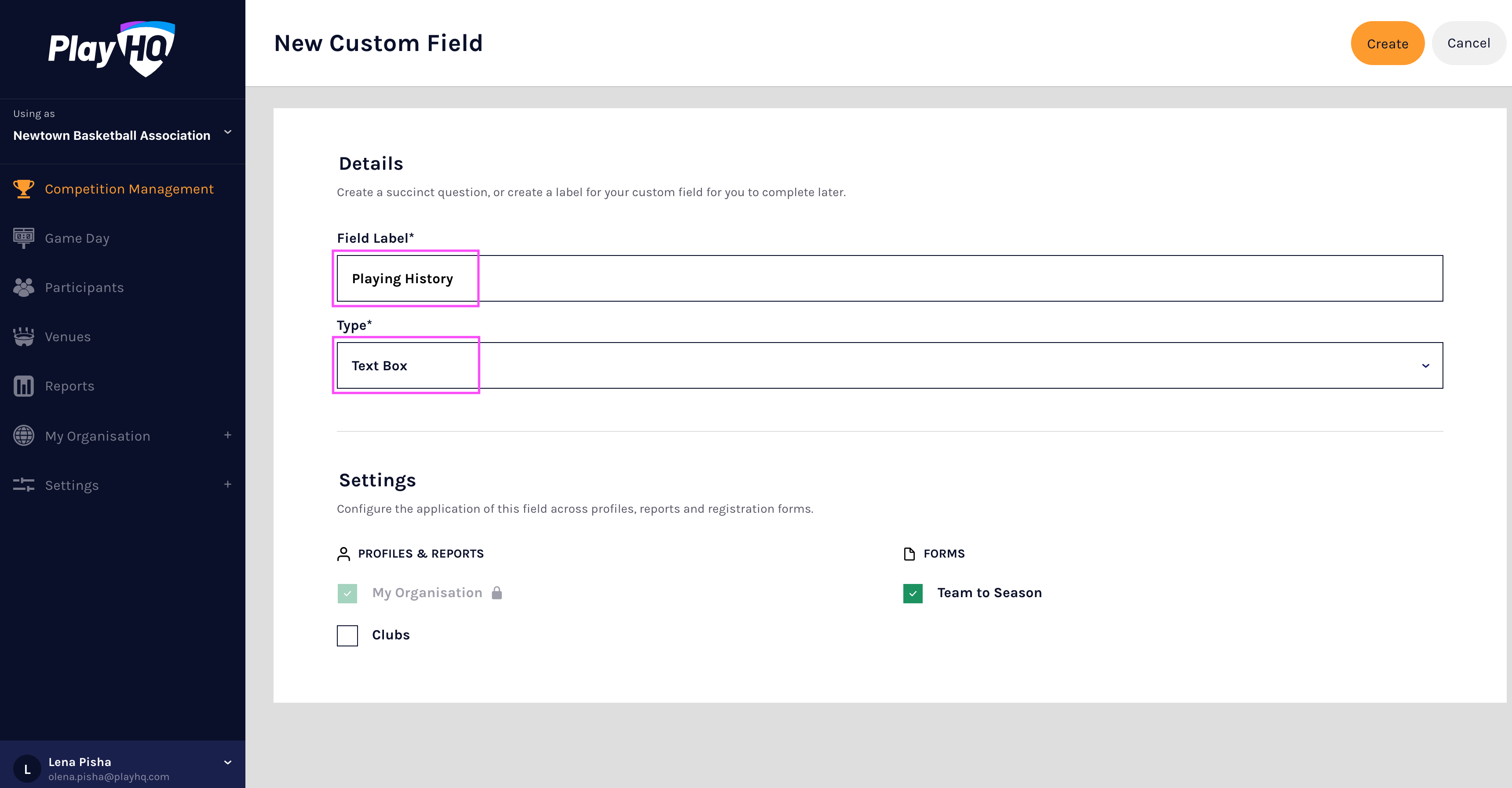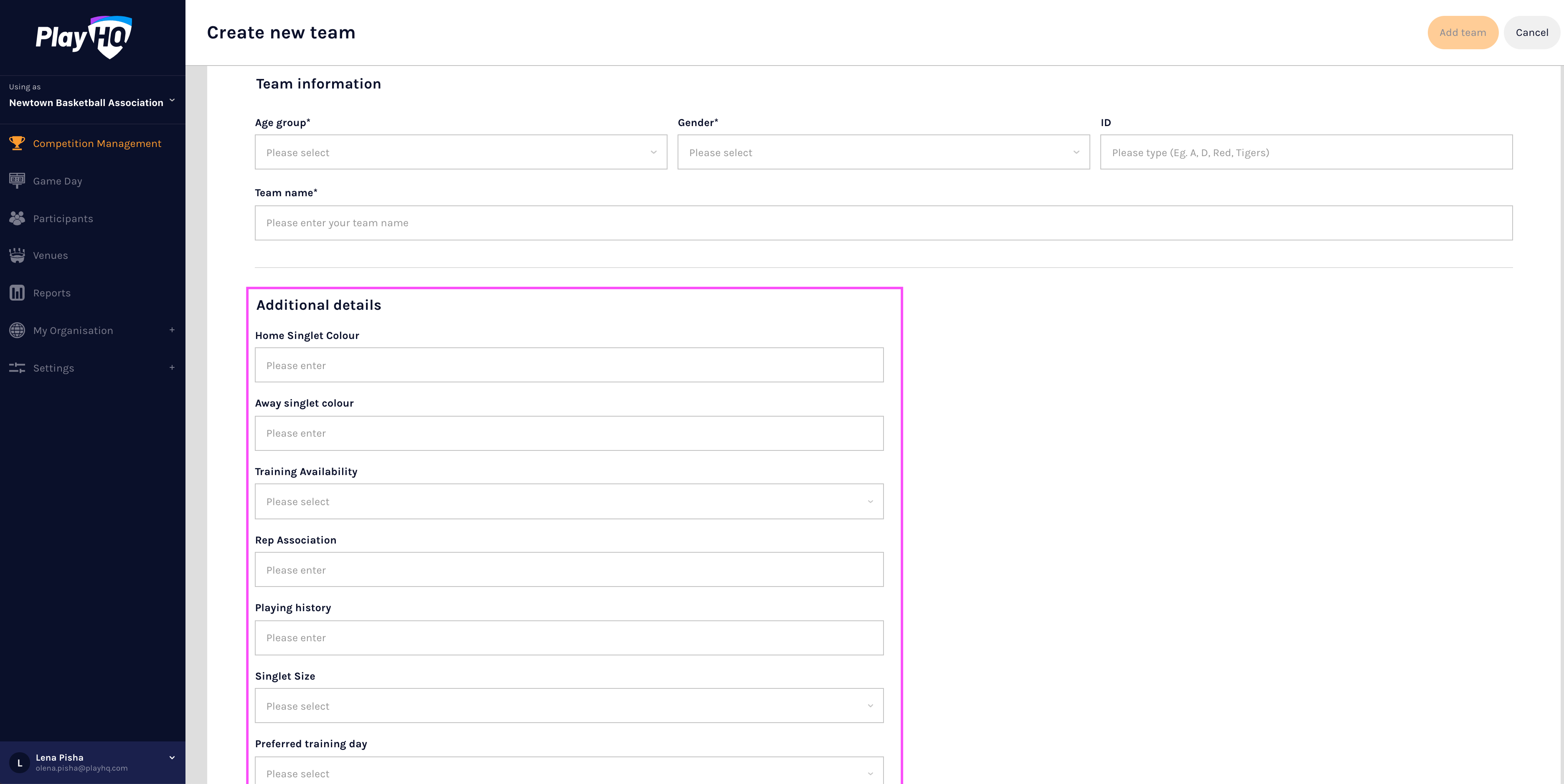 This article describes how to configure team custom fields in the PlayHQ admin portal.