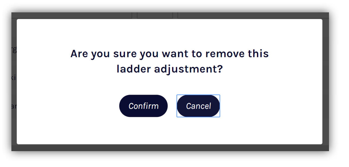 To undo changes, simply select Remove to delete the ladder adjustment. You'll then receive a confirmation pop-up message, select Confirm to commit the removal.
