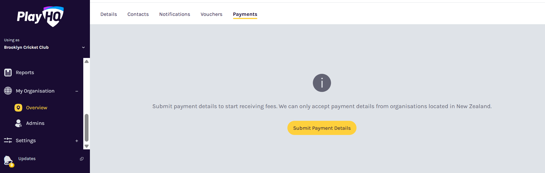 Setting up payment details allows your organisation to accept online payments through PlayHQ.