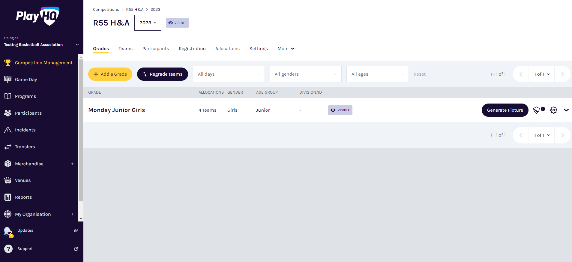 Before you begin generating a grade's fixture, ensure the correct teams are allocated to the grade.