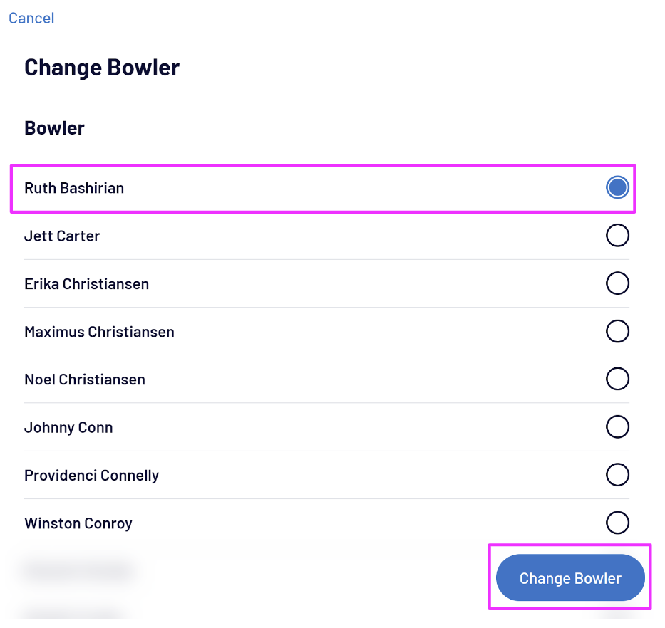 Bowlers that have reached their bowling limit, if bowling limits are enabled for the grade, are not displayed in the list.